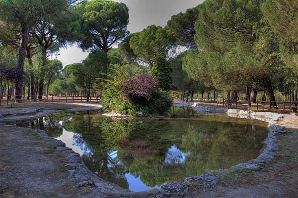 En las cerca de 80 ha que ocupa el bosque se distinguen dos zonas claramente diferenciadas. La primera, de unas 12 ha, corresponde a la zona de entrada desde la ciudad, en la que se mantienen grandes espacios ajardinados y una zona de ocio formada por pequeños bares y zona de juegos infantiles. En esta zona queda incluida la nueva infraestructura de aparcamientos de la calle Pisones, de construcción radial al bosque, que ha sido diseñada para evitar la llegada de vehículos al interior.